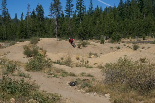 John playing around in the pump track at the trail head.