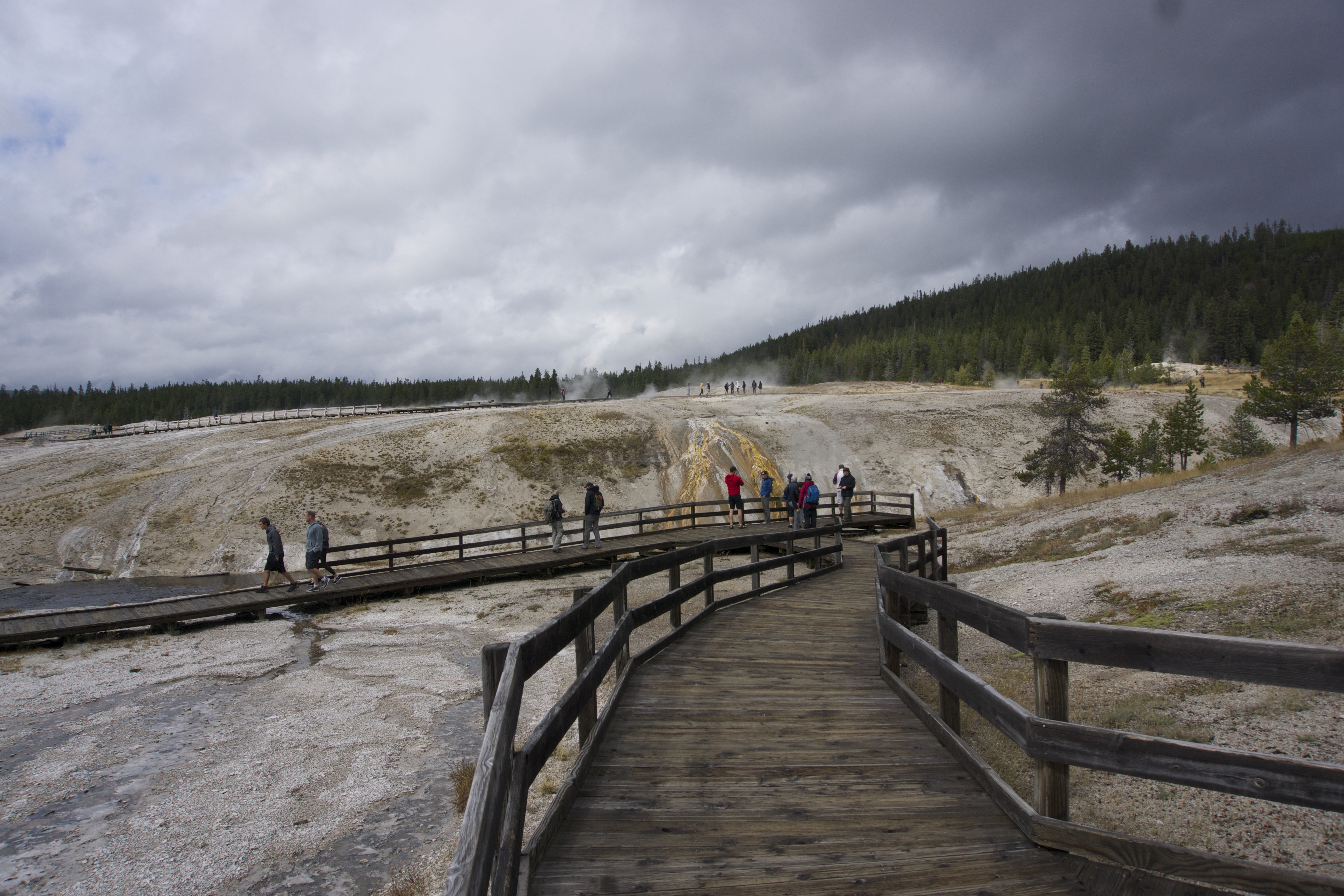 Checking out the scene at Old Faithful.
